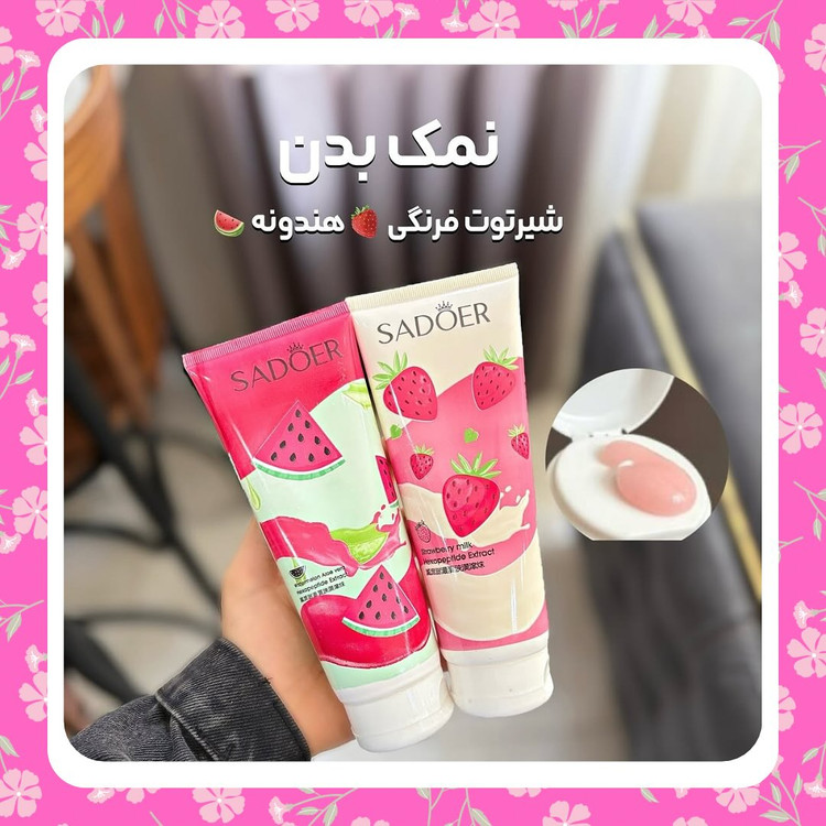 نمک بدن سادور 🍓🍉دارای رایحه شیر توت فرنگیدارای رایحه آلوئهورا هندوانهاز بین برنده پوست مرغیمناسب برای انواع پوست هاآبرسان پوستاز بین برنده سلول مرده پوستاز بین برنده جای جوش بعد از شیواز بین برنده تیرگی و کدری پوسترفع تیرگی زیر بغل و کشاله ران و بیکینیخوشبو کننده و لطیف کننده پوست بدنجلوگیری از پیری زودرس و نرم کننده پوستسم زدایی پوست بدن و رفع التهابات پوست