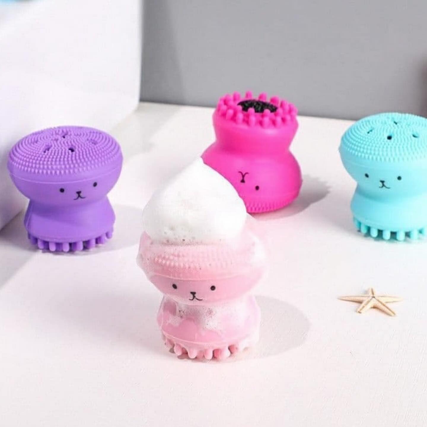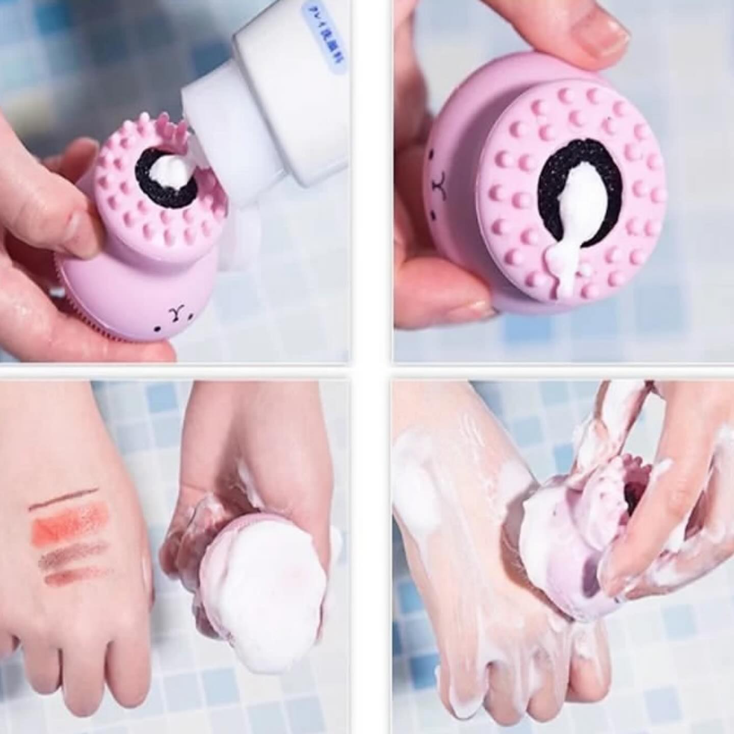 ابتدا فيس براش را مرطوب كنيد و سپس مقدارى از شوينده را روى اسفنج داخل مخزن براش بريزيد و سپس مقدارى با دست فشار دهيد تا كامل كف كند. سپس از سرى سيليكونى كوتاه تر با حركت دورانى شروع به شستن پوست صورت كنيد و در آخر هم از سر